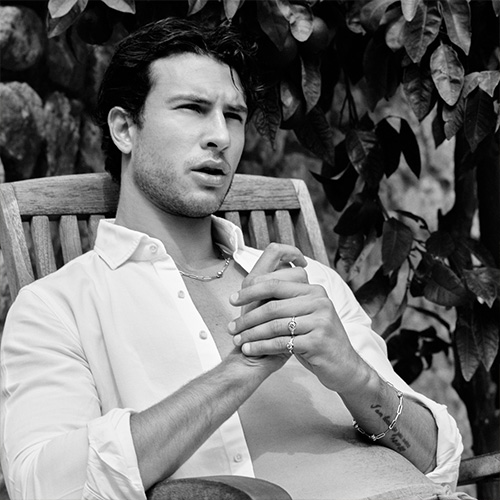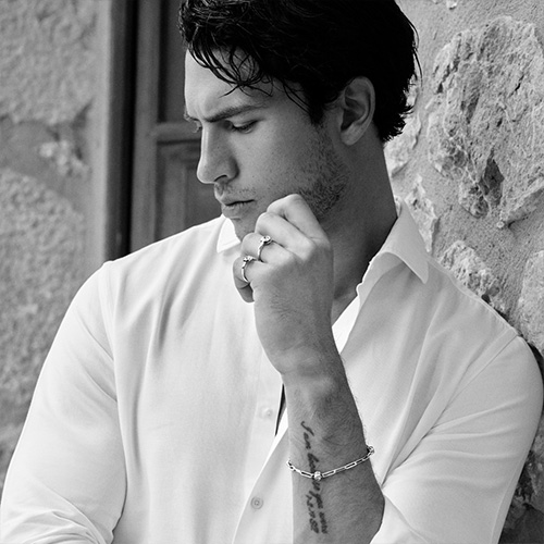 A face that perfectly reflects the essence of mandana and conveys strong values. Mattia Narducci is not only a model, actor and creator. He embodies style with character and stands for self-confidence, creative versatility and a clear attitude. In mandana, he has found exactly what moves him: conscious luxury with real substance. He wears the jewellery with ease, a strong presence and a flair for the extraordinary.